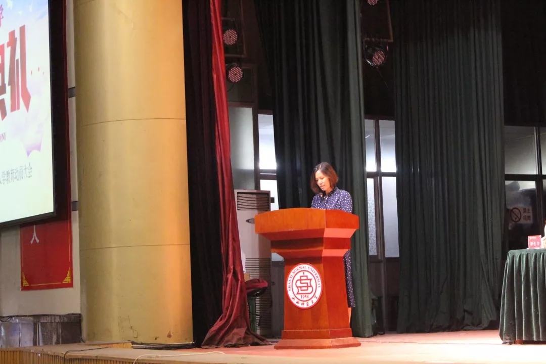 于文化艺术活动中心隆重举行了2018级新生入学教育动员大会。院党委书记吴华英,院长赵变亲,党委副书记钱成,副院长栗永清,团委副书记樊琳琳,教师代表谭生力,以及2018级新生辅导员和全体新生共同参加了大会。