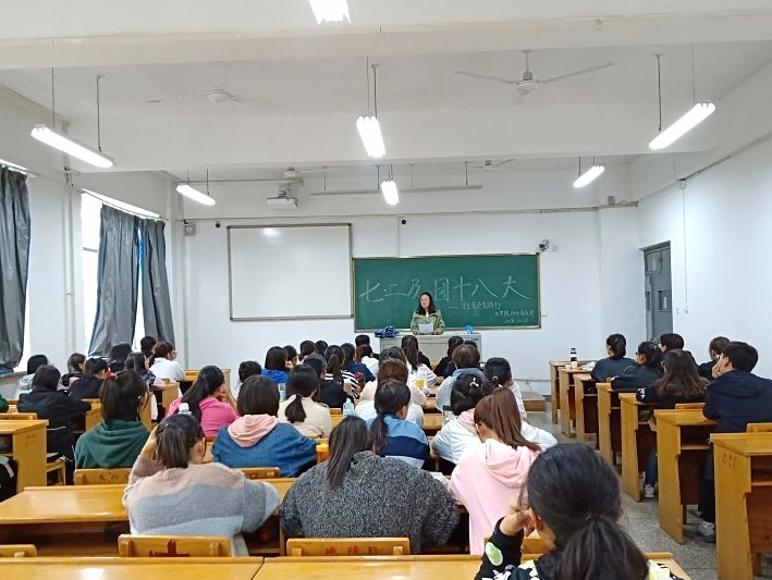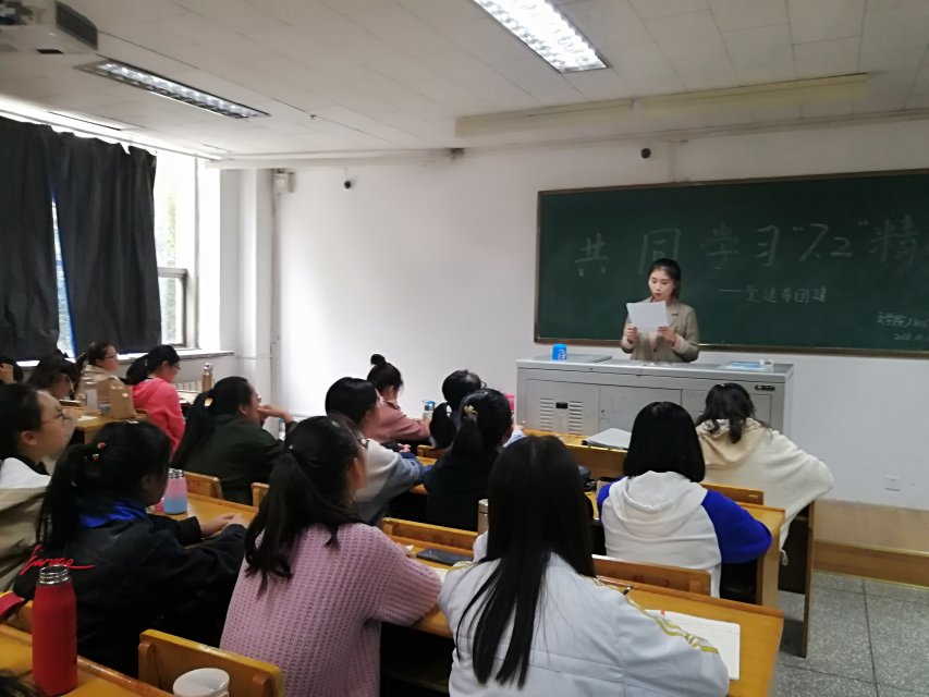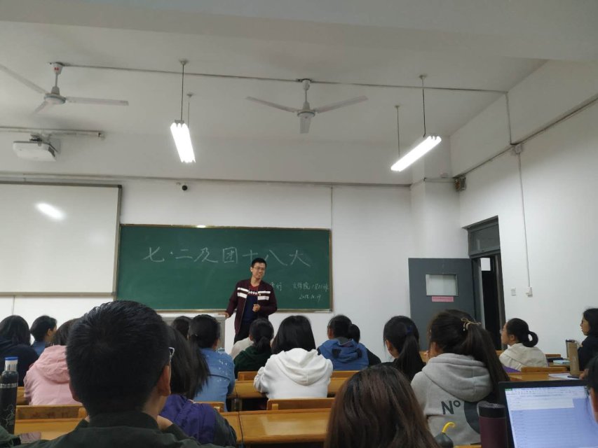 10月18日下午,编辑出版学及汉语国际教育学生党支部唐姝菲带领1806班团支部于12108教室学习了讲话精神。她说到,习近平总书记的重要讲话充分肯定了五年来共青团工作取得的成绩,深刻阐明了党中央关于青年工作的基本要求,新生团员应该明确新时代共青团的职责使命,坚定理想信念,践行人生规划,不负习近平总书记的嘱托和厚望。