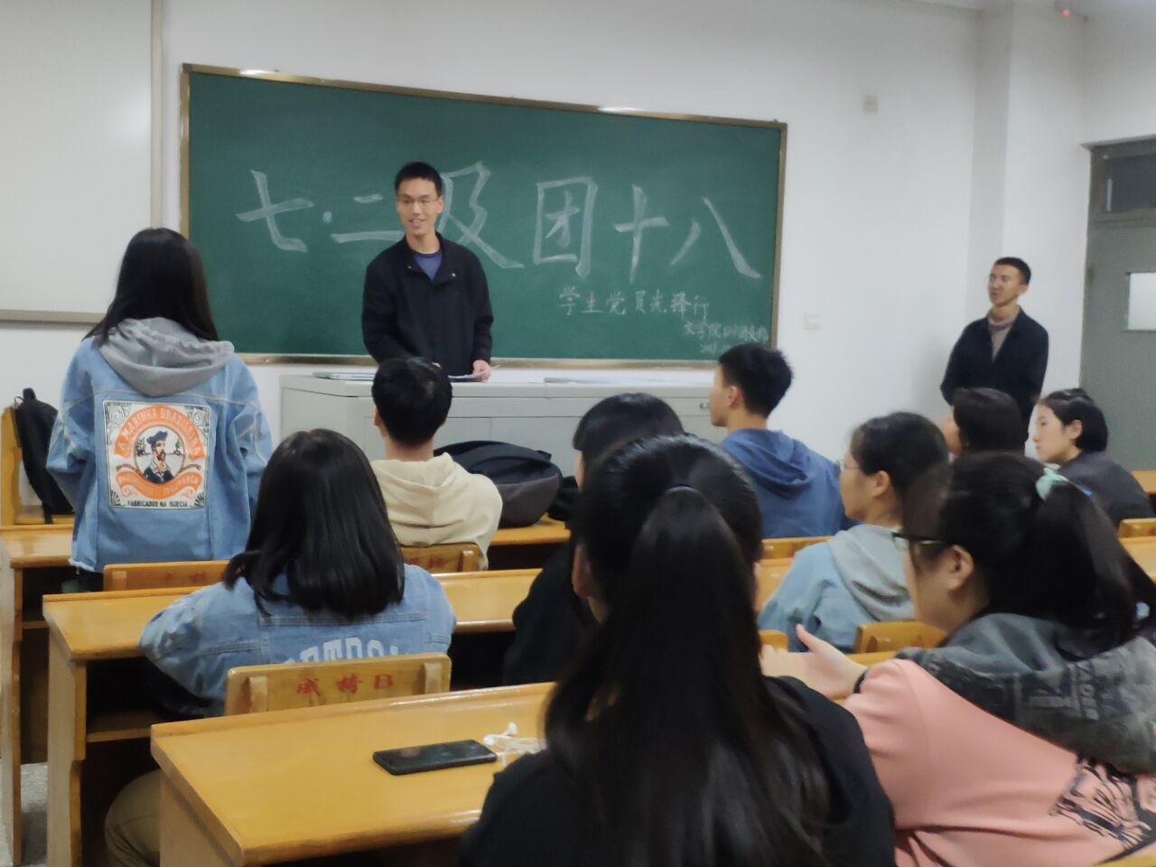 10月18日上午,“学雷锋,送温暖”小组学生党支部带领1801班团支部在12212教室开展了学习“7·2”重要讲话精神主题团日活动。学生党员靳立恒分享了自己学习习近平总书记重要讲话精神的感悟,带领团员们共同学习了习近平总书记关于青年和共青团工作的真知灼见,引导同学们从习近平总书记的高度重视、悉心指导中感受责任,充分认识到做好共青团工作的重要价值和光荣使命。