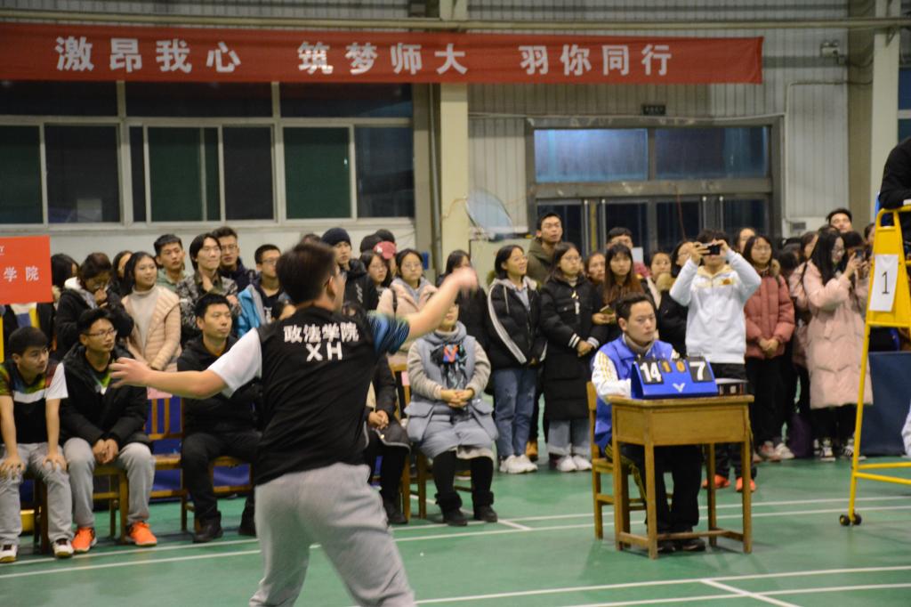 、政法学院、地理科学学院、戏剧与影视学院、传媒学院、生命科学学院、物理与信息工程学院、教育科学学院晋级八强;复赛后,传媒学院、教育科学学院、政法学院、地理科学学院成功晋级四强,迎来了半决赛。羽毛球联赛作为师大加强校园文化建设的精品活动之一,已连续走过九个年头,始终本着切实提高学生身体素质,丰富学生课余生活,增强学生凝聚意识和集体荣誉感的目的开展,为推动“阳光体育”运动蓬勃发展做出了一定贡献。