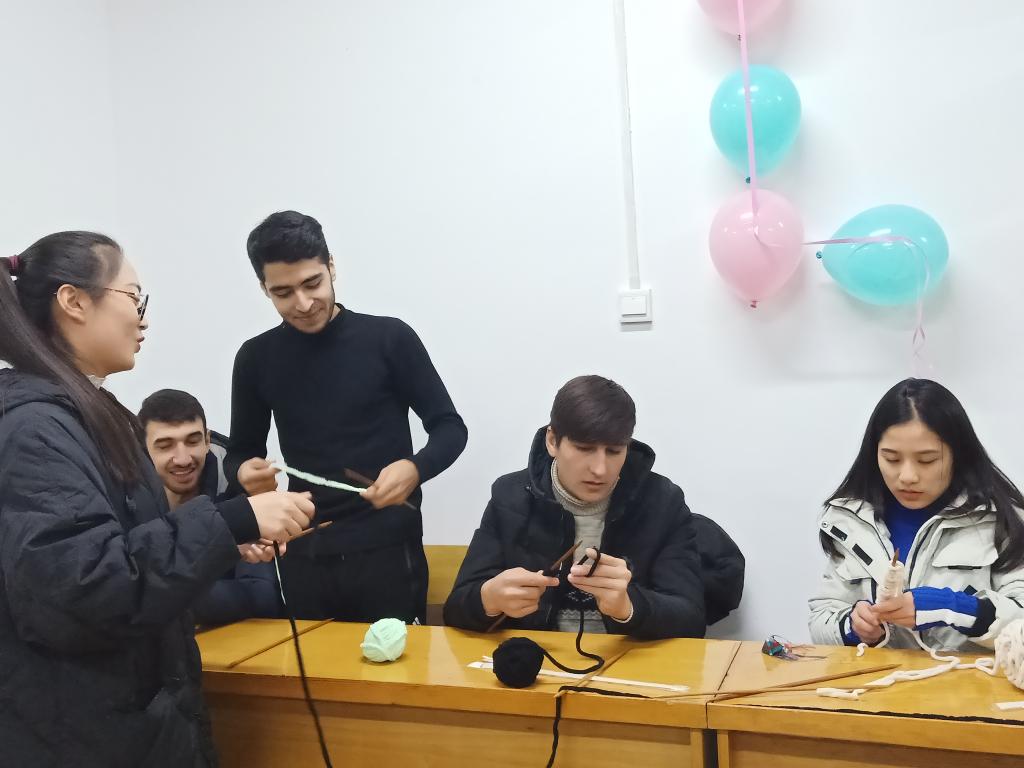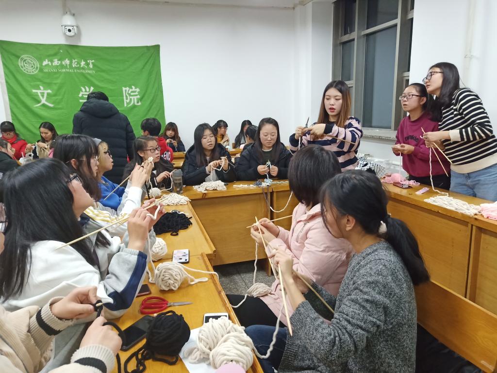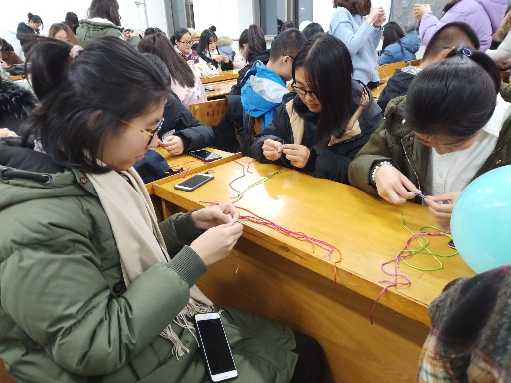 “暖冬”系列活动之一,至今已走过九个年头。 学员们通过PPT学习、趣味问答和谜语拷问三个环节对中国编织历史以及历代实用编织物品有了进一步的认识。在随后的实践活动,学员们从围巾、手链、中国结、折纸、剪纸等项目中选择自己感兴趣的并前往指定教室学习,小老师们和大家一起制作,时不时就编织各个环节进行技巧交流。活动接近尾声时,学员展示出了风格迥异、形态丰富的小作品。“通过动手编织属于自己的手工艺品,我感受到了编织文化的魅力,体验了实践的快乐。希望学院能坚持将这项活动举办下去。”学员袁梦在活动最后说道。