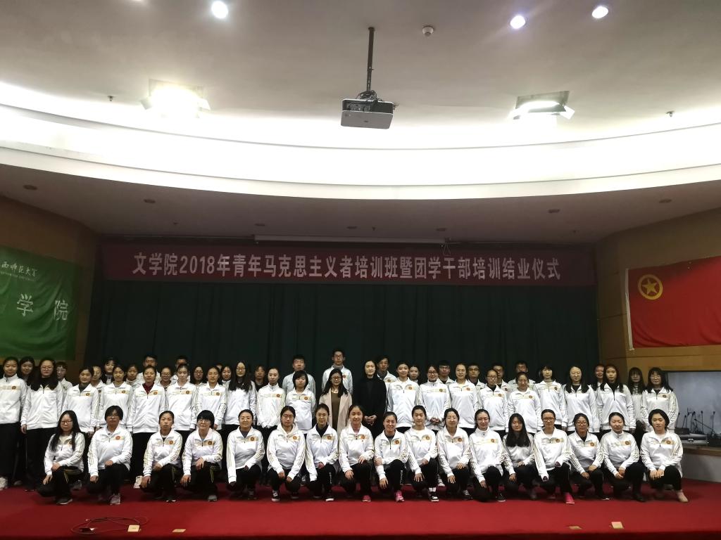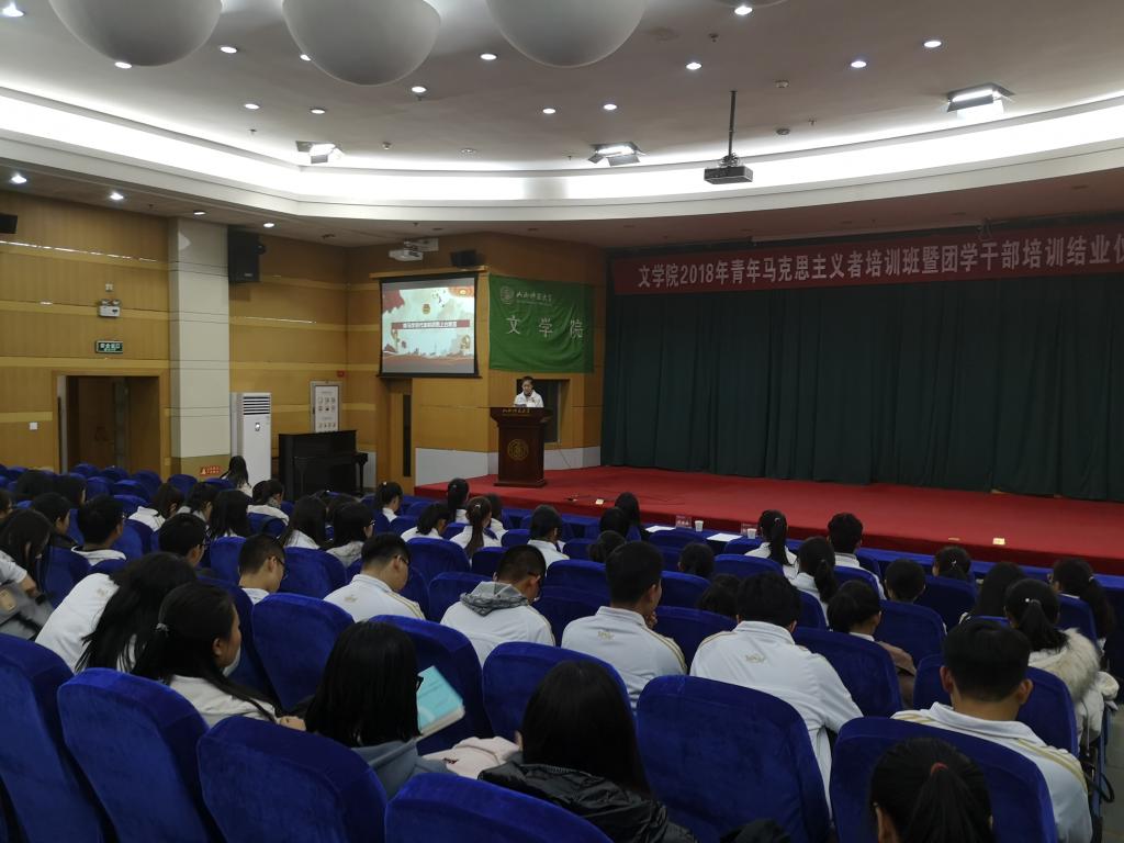 在科学会堂二层报告厅举行2018年青年马克思主义者培训班暨团学干部培训结业仪式。团委副书记樊琳琳、学生团委副书记杜晓玥出席现场。18级青马培训班全体学员参加。