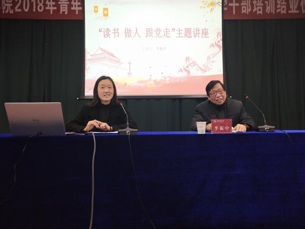 樊琳琳在总结发言中对李振中老师表示感谢,并希望同学们进一步坚定理想信念,练就过硬本领,为实现中华民族伟大复兴的中国梦贡献自己的青春力量。