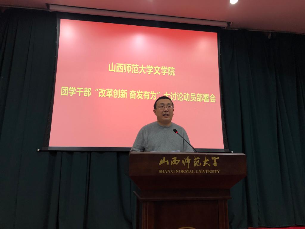 团学干部“改革创新、奋发有为”大讨论动员部署会暨团委学生会部门述职大会在科学会堂二层召开。院党委副书记钱成、团委副书记樊琳琳及学院200余名团学干部参加。