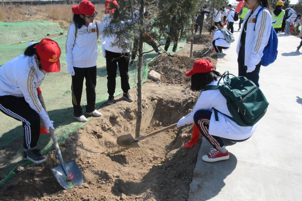在尧都区一平垣乡,“学雷锋,送温暖”小组的同学们参加了团市委组织的“美丽临汾·我们在行动”环保志愿服务活动暨“临汾青年林”揭牌仪式,与来自社会各界的志愿者们一起在赤河村种下了一片“青年林”。仪式上“学雷锋,送温暖”小组杜晓玥同学代表青年学生发出倡议,号召人们树立绿色生态理念,从我做起,从小事做起,从身边做起,从现在做起,爱护环境,保护生态。大家团结协作,一起挖树坑、抬树苗、挥锹填土,以饱满的热情、十足的干劲融入植树活动中,以实际行动为绿色临汾增添了一片生机。
