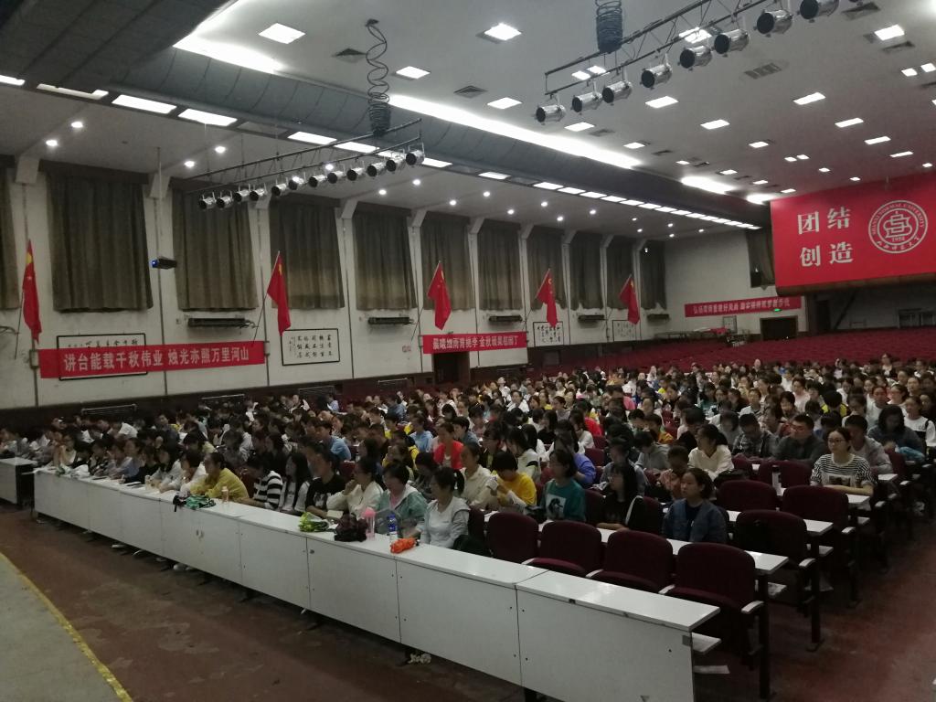 副院长栗永清、中文系系主任李晓敏、编辑出版系系主任薛月兵担任本次培训会主讲人。2019级全体新生共同聆听。