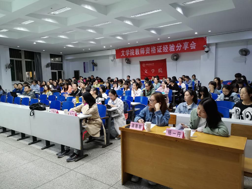 团委学生会学习部在07101教室举办了教师资格证经验分享会。1603班刘甜甜、1603班杨一丹、1605班温慧敏以及1607班武珈羽四位同学应邀担任主讲。近百名学生到场聆听。
