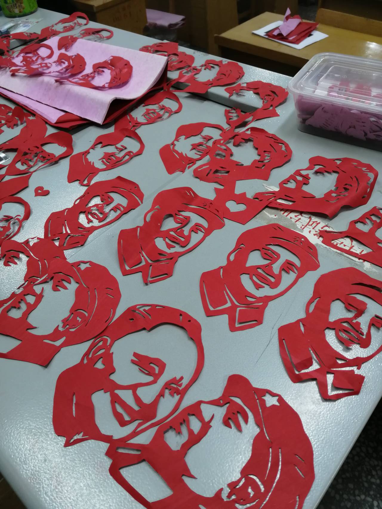 通过前期线上宣传,社员们参与热情高涨。活动过程中,社团剪纸、编织组的组长代表先介绍与剪纸、编织相关的民俗文化及本次活动学习内容,之后为同学们统一分发活动所需材料,开始进行手工教学。活动通过结合文化宣讲与手工实践,取得了良好的教学效果,一幅幅新中国五代领导人剪纸作品,诉说着同学们不忘初心跟党走的思想自觉,一条条带有中国红靓色的金刚结手链,讲述着我们身为中华儿女的自豪。剪刀在指间流转,创意在绳结跳跃。在同学们的努力下,平凡的纸张和线绳都在指尖焕发出了别样的风采,这既是一次美的熏陶,也是民俗学社立足于民间工艺引导大学生多元表现爱国热情和创新思维的一种物化表达、表现的过程。