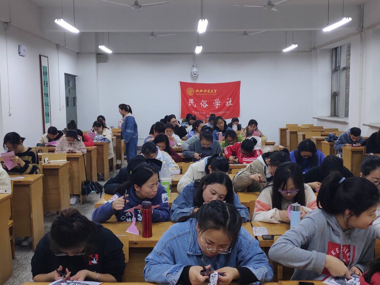 11月9日和10日下午,民俗学社在12206教室开展了以“花式献礼,庆七十华诞”为主题的剪纸及编织活动,近150名同学参加了本次手工活动。