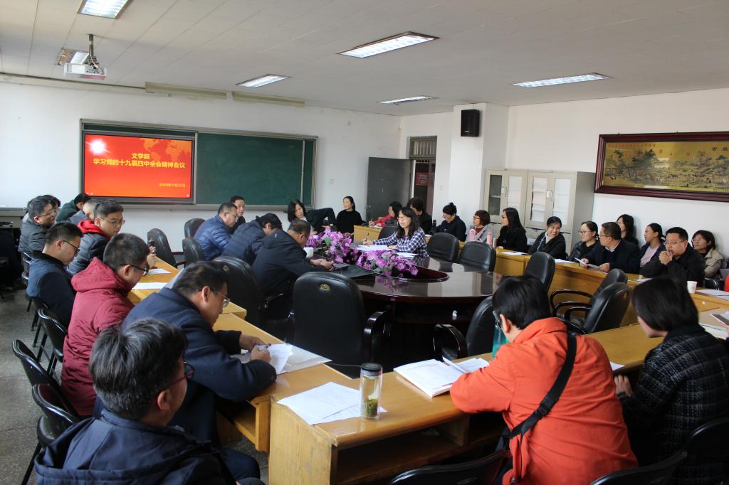 党委组织全体教职工在学院会议室召开集体学习党的十九届四中全会精神会议。院党委书记强汾生担任本次会议主讲人。