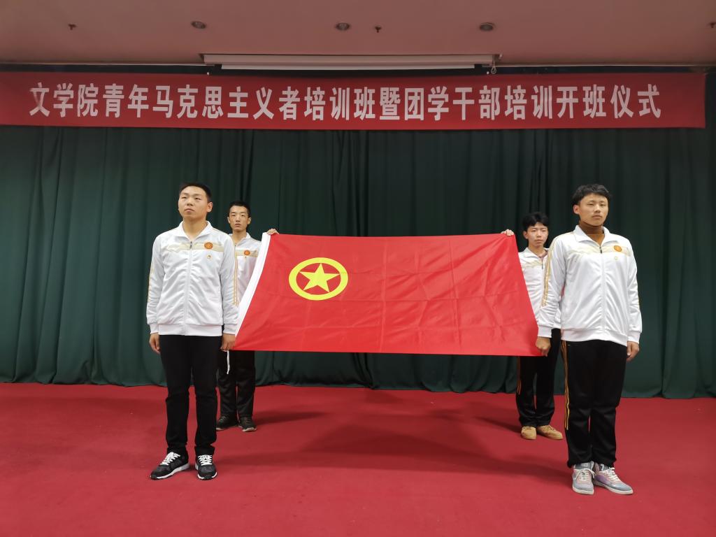 青年马克思主义者培训工程纪律要求》,组织观看了爱国视频《纪念五四运动100周年——青春与祖国同在》,通过宣讲董存瑞、杨靖宇等人的英雄事迹,让全体学员再一次深入地了解了五四风云,呼吁青年大学生积极肩负复兴国家的历史重任,传承五四精神。青马学员代表董洁潇阐释了青马培训的重要意义,号召大家努力向“学会为人、感恩、自我总结”“找准团队中自我定位”“协调管理时间”“努力学好专业”迈进。仪式最后,大家在庄严的团歌声中迎团旗、接使命。