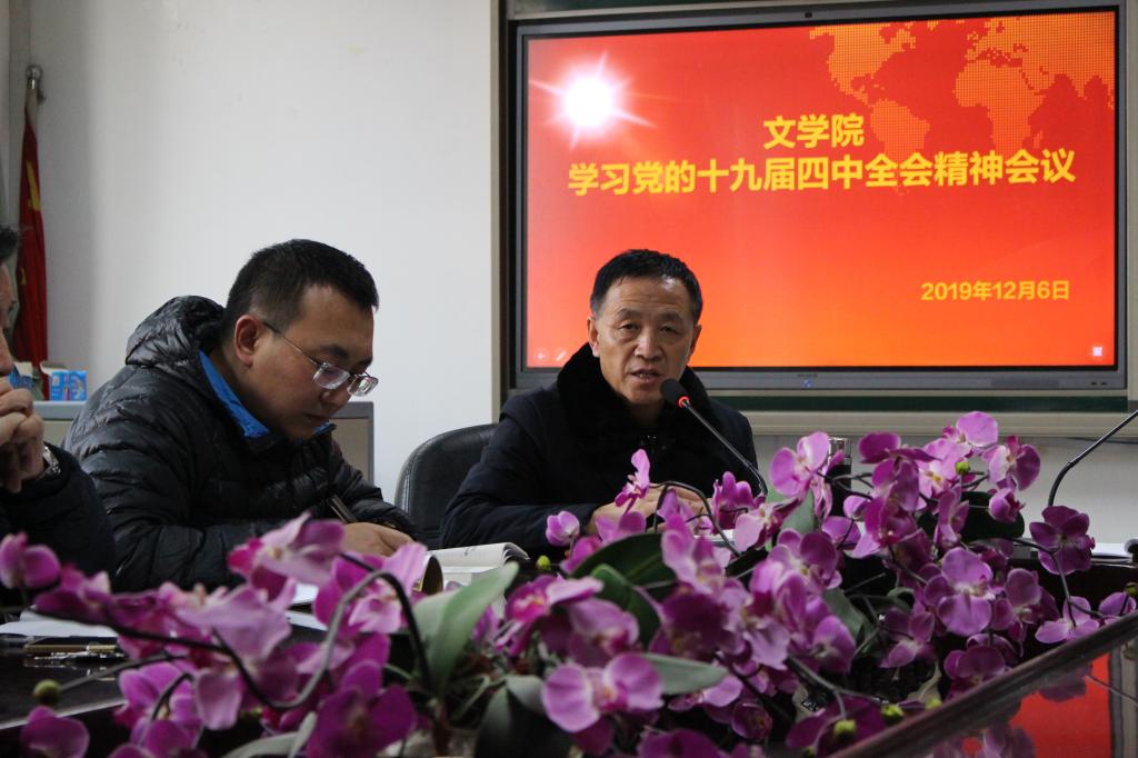 党委组织中心组成员在学院会议室召开会议集体进行党的十九届四中全会决定第一专题学习。院党委书记强汾生担任本次会议主讲人。