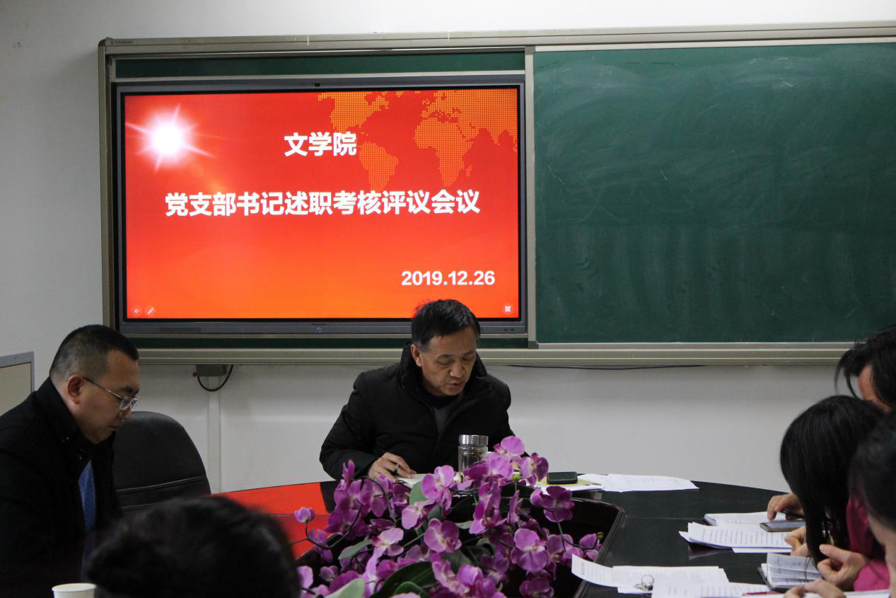 在学院会议室召开党支部书记述职考核评议会议。全体党委委员、党支部书记、师生代表6人参加,会议由院党委书记强汾生主持。