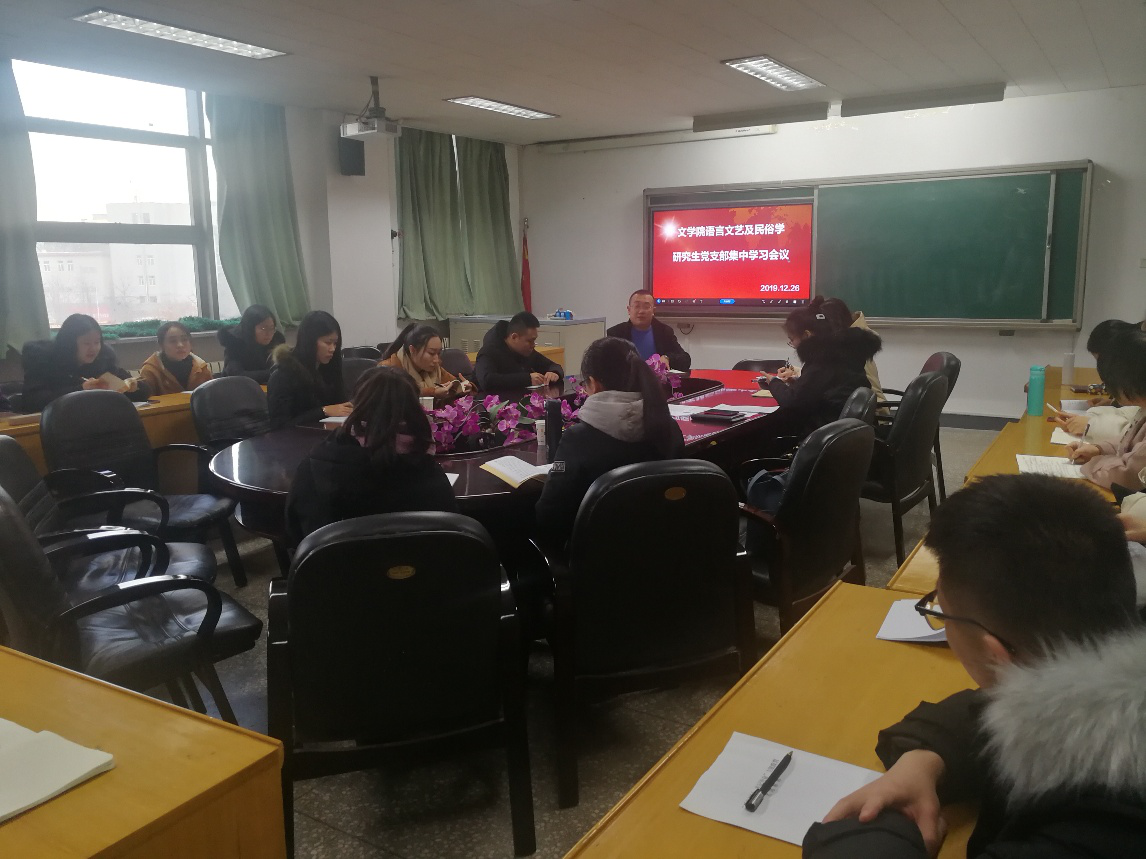 语言文艺及民俗学研究生党支部组织全体支部党员和入党积极分子召开专题学习讨论会,集中学习了党的十九届四中全会决议和“三篇光辉文献”之习近平总书记在推动中部地区崛起工作座谈会上的重要讲话。活动由党支部书记钱成主持。