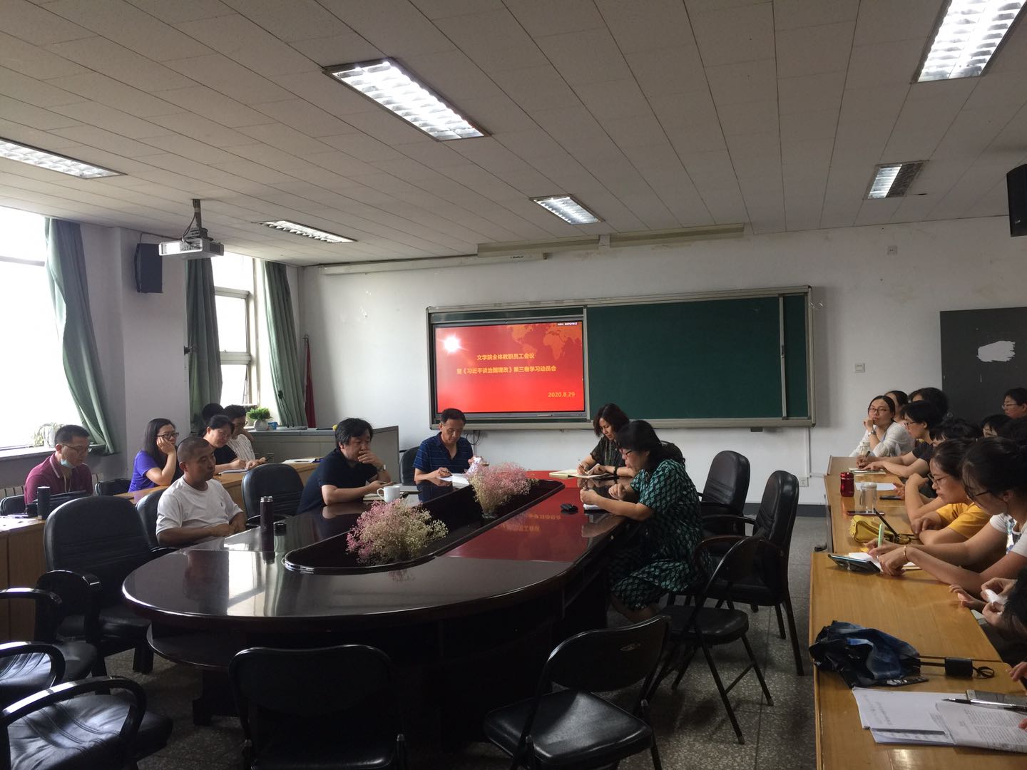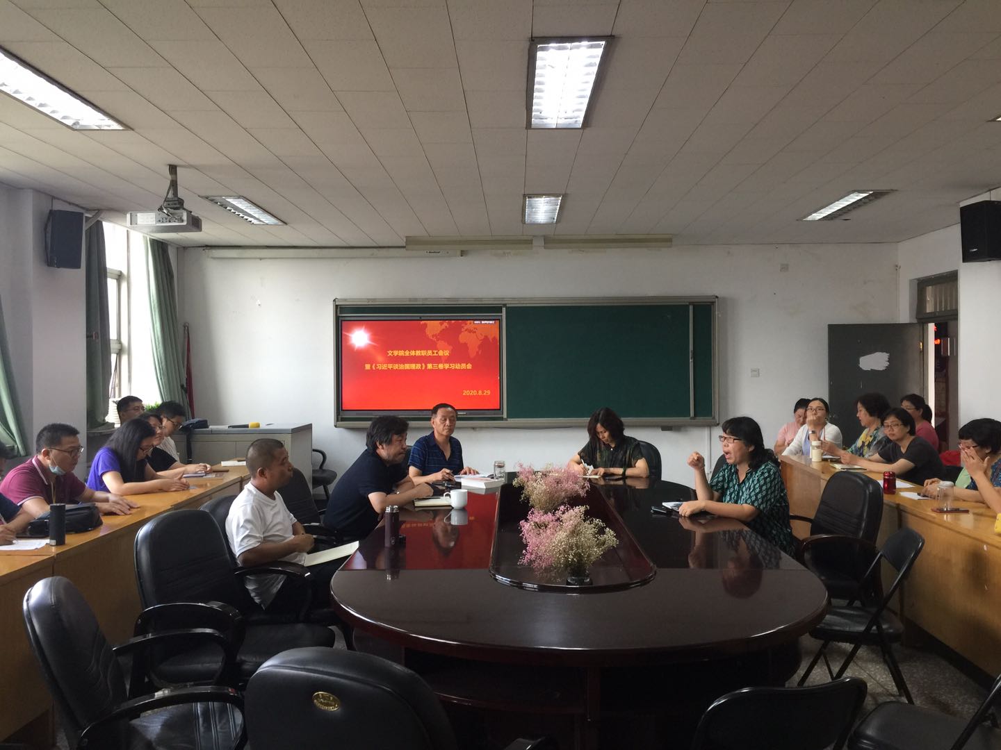 在学院会议室召开全体教职员工会议暨《习近平谈治国理政》第三卷学习动员会,会议由院长赵变亲主持,全体教职工参加。