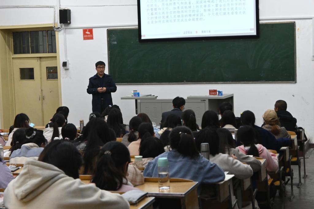 在05202教室举办《尚序笃的升堂入室—打造精品课堂的方法》学术讲座。讲座特邀山西省骨干教师、山大附中语文高级教师吴树军担任主讲人。共有200余名学生参加讲座。