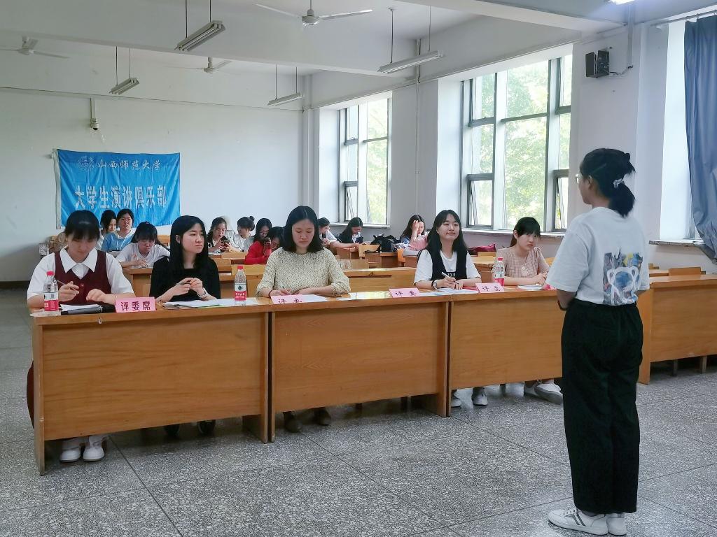 在12206教室举办了“青年奋斗者说,中文演讲大赛”初赛,由大学生演讲俱乐部及新媒体中心学生会宣传部承办,院团委副书记樊琳琳、专职辅导员侯昕昊、专职组织员王永青担任评委。