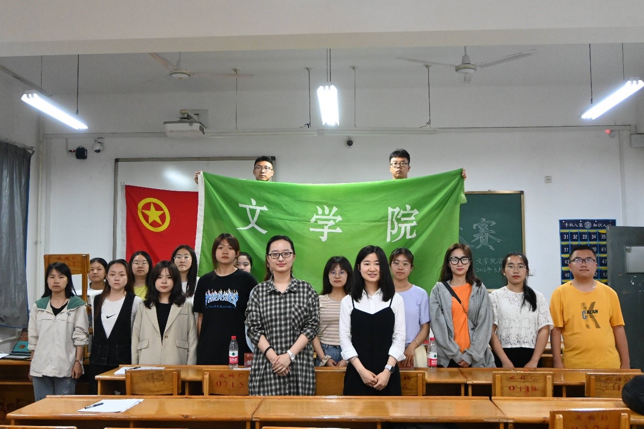 党史学习教育的活动之一。汉语言文学学生党支部书记侯昕昊与学院专职组织员王永青担任评委。