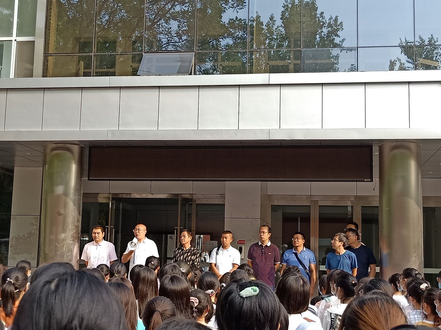 在新校区2号教学楼前举办2021级新生见面会暨院党委书记开学第一课。院党委书记强汾生,院党委副书记钱成,中文系系主任李晓敏,编辑出版专业系主任薛月兵,专职组织员王永青,新生辅导员以及2021级全体新生共同参与。见面会由钱成主持。