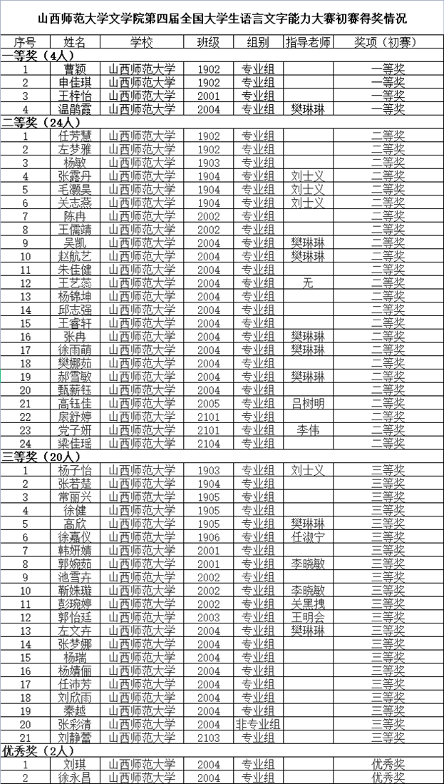 学子在此次比赛中共51人获奖,其中一等奖4人,二等奖24人,三等奖21人,优秀奖2人。