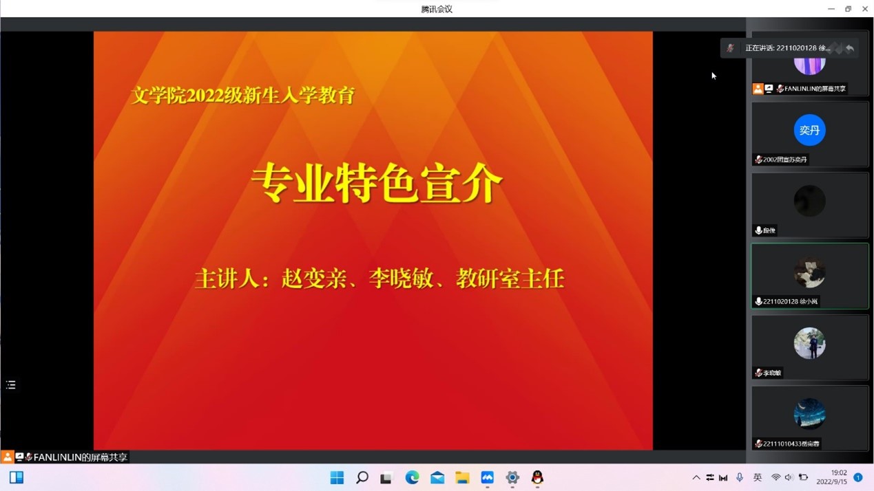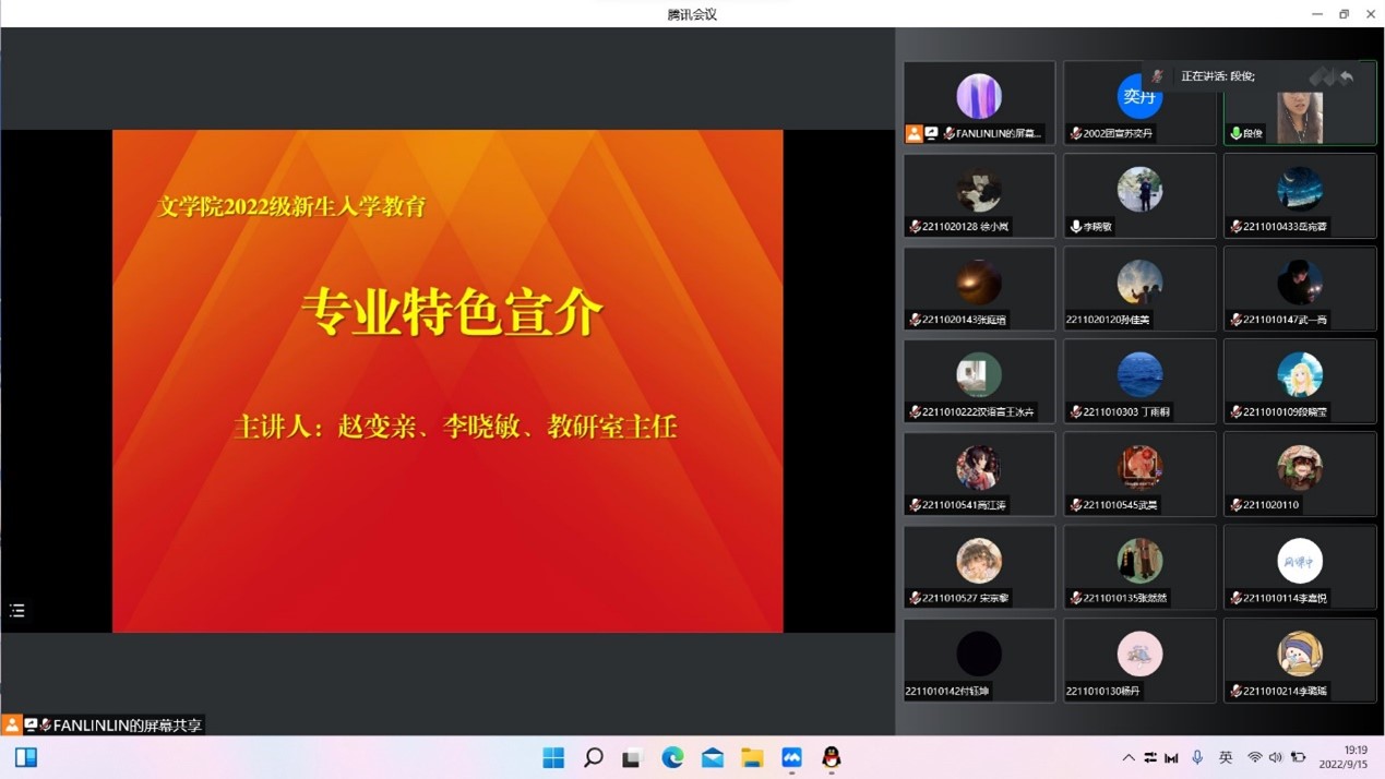 汉语言文学专业的专业概况、努力方向和人才培育方案,他从学科的发展历程、学院的师资情况和学生的实践平台三方面阐述,让同学们对自己所学的学科进行了一个整体的认识。汉语言文学专业各教研室主任从师资力量、学科发展方向、课程安排和学术风格等多方面介绍了各门课程的特色,激发同学们的学习兴趣,领会学科的魅力。