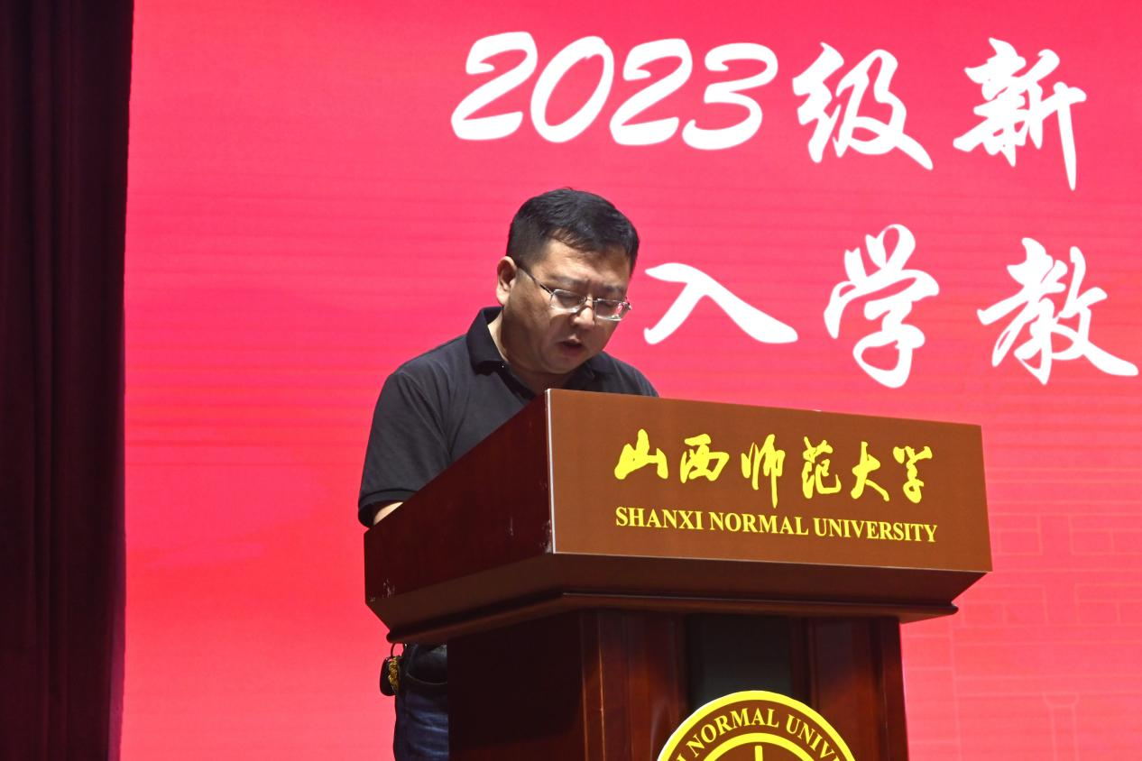 2023级新生开学典礼暨入学教育动员大会于科学会堂召开。副院长栗永清、李晓敏、关黑拽、中文系主任严艳群、编辑出版系主任薛月兵、院团委书记樊琳琳、教师代表李晰出席会议。23级新生辅导员王明会、贺晓璇、董晓可、郭媛、吕树明及真人漫画