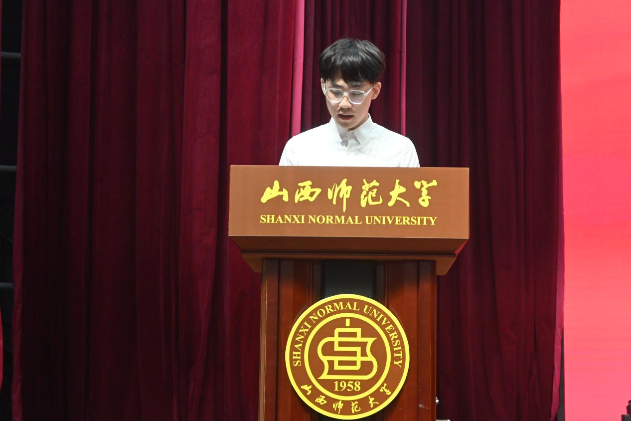在校生代表王睿轩结合大学在校期间自身经验,从学习生活、社团部门的加入以及各项比赛、活动的参与等多方面进行发言。“大学者,研究高深学问者也。”在大学,同学们仍应以学习为第一要务,担起时代大任,敢于尝试、勇于试错,努力成长为新时代优秀大学生。