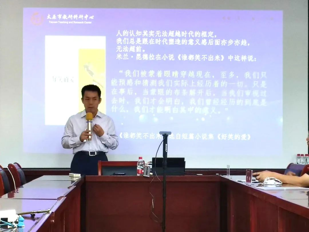 在院会议室举办题为“唯师不可以为伪”的学术报告,山西太原市教研中心主任樊晓东老师担任主讲人,李晰老师主持,真人漫画
