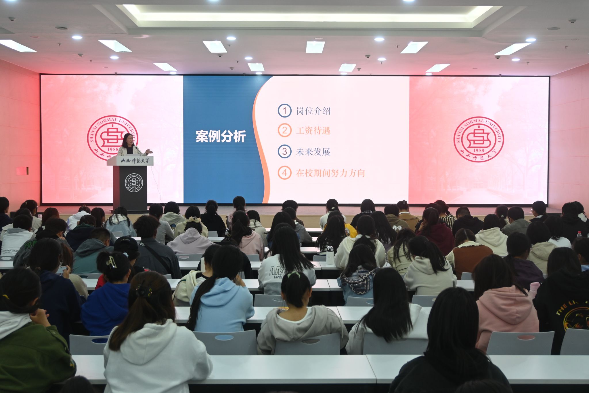 就业方向与具体案例。其次,樊琳琳向同学们介绍了就业规划的基本原则和方法。她提出,同学们应该从自身兴趣、特长和价值观出发,结合所学专业和未来职业的发展趋势,制定出符合自己实际情况的就业规划。她还特别强调了实践的重要性,建议同学们通过实习、参加学生活动、社团活动等方式去积累丰富的实践经验,从而提高自身综合素质,从容应对未来就业可能面临的各项挑战。