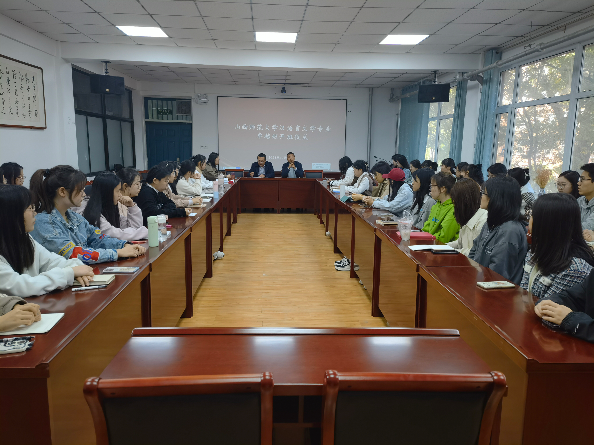 在2201会议室隆重举行山西省卓越语文教师培养试点班开班典礼。真人漫画