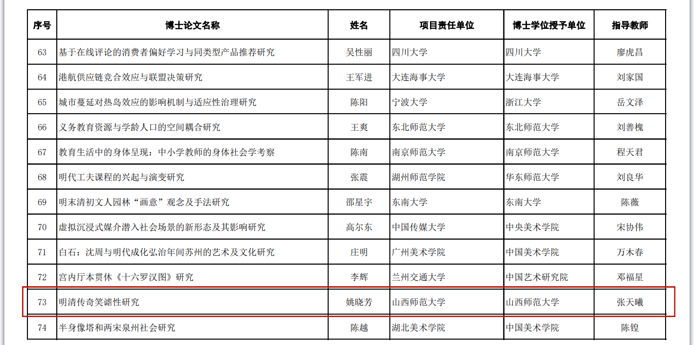 姚晓芳老师的博士学位论文《明清传奇笑谑性研究》获准立项。