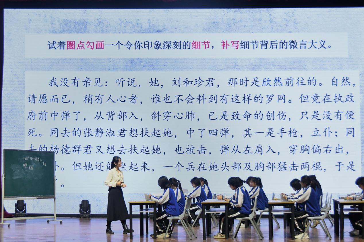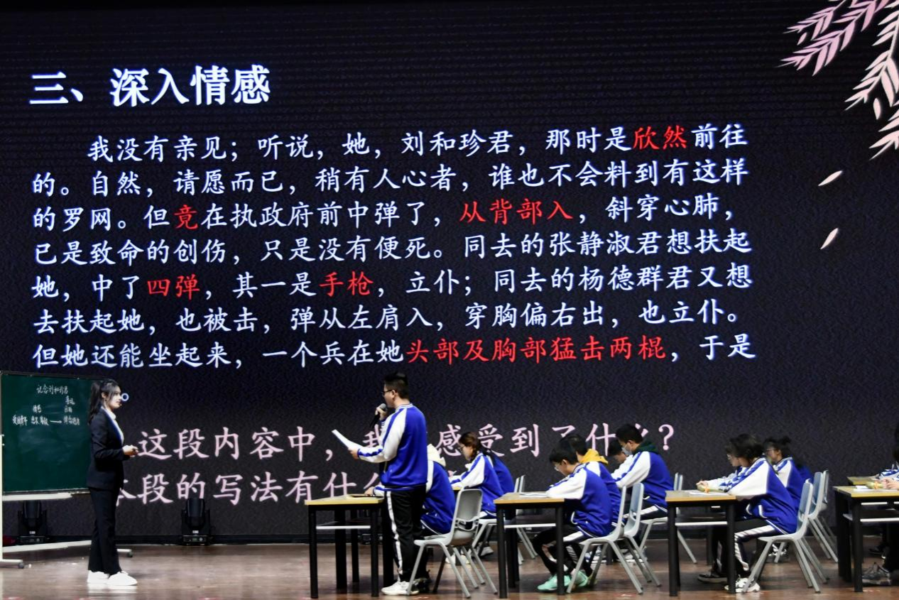 卓越师范生代表芝欣围绕鲁迅名篇《记念刘和珍君》进行现场教学、研讨交流。
