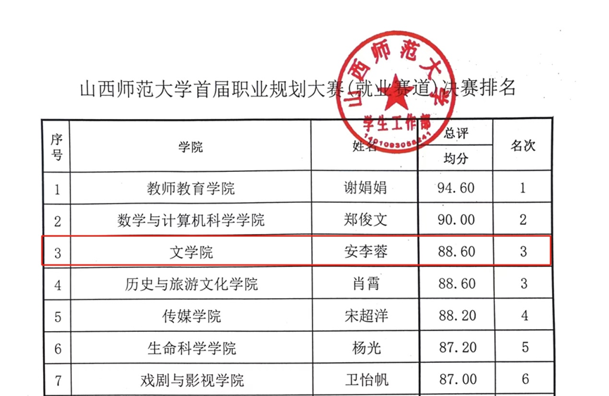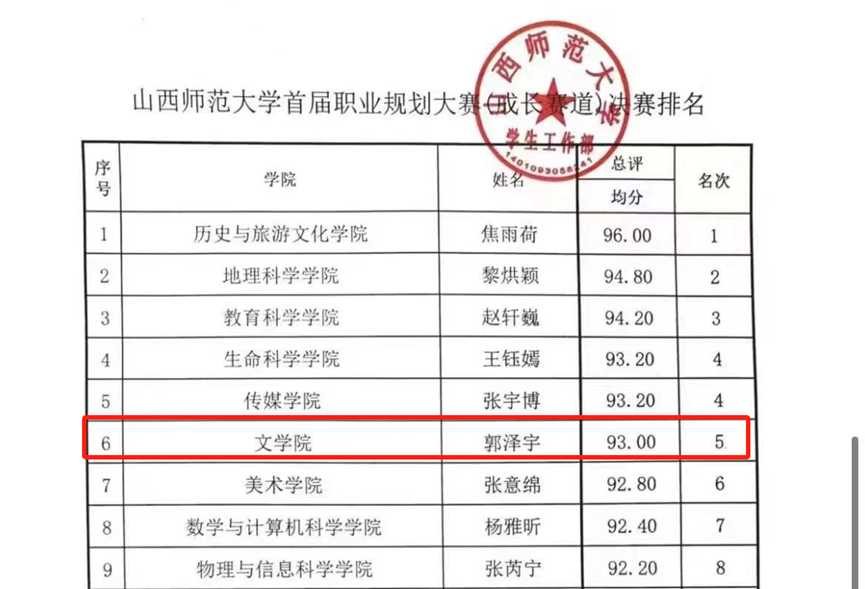 研究生安李蓉获得本次比赛就业赛道第三名,本科生郭泽宇获得成长赛道第五名,均进入省赛。