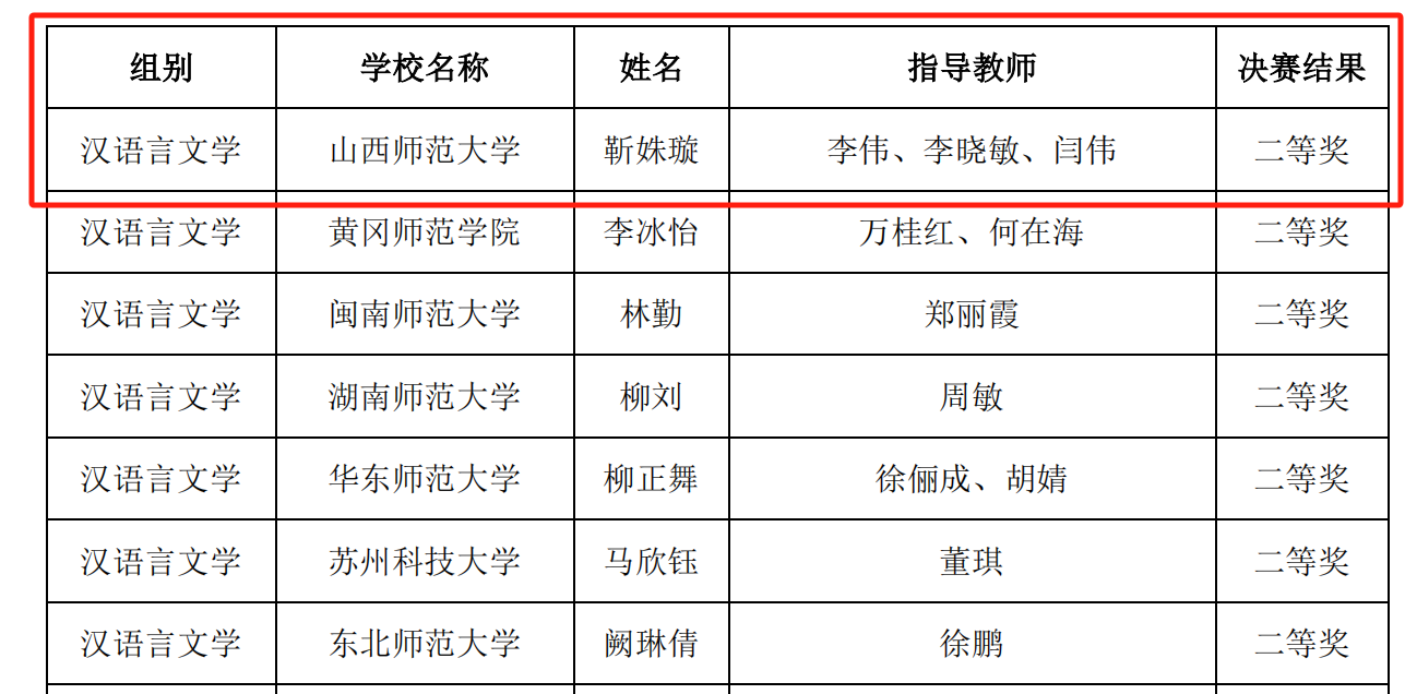 2020级汉语言文学专业本科生靳姝璇同学(指导老师:李伟、李晓敏、闫伟)荣获二等奖!