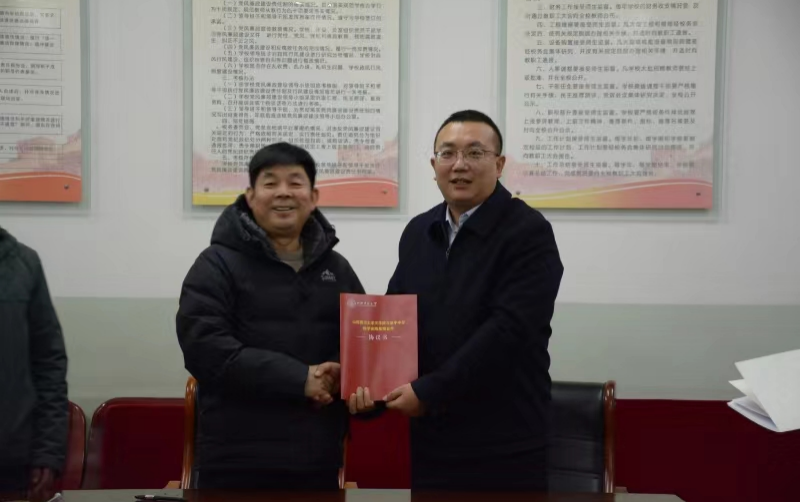 党委书记钱成与原平中学校校长吴衡签订了《实践教学基地合作协议》并授予原平中学校“实践教学基地”牌匾。