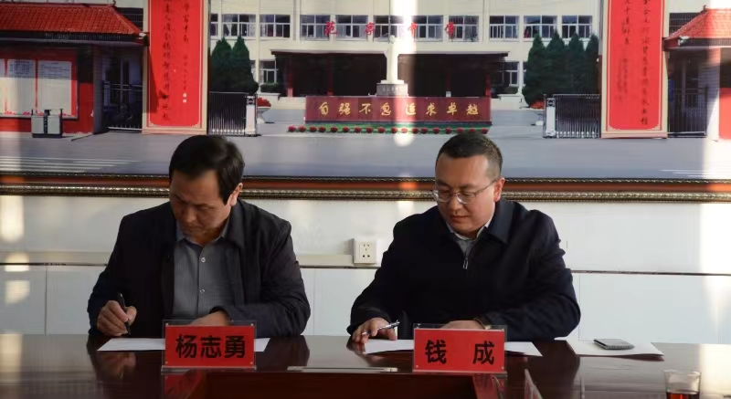 党委书记钱成与原平范亭中学校校长 杨志勇签订了《实践教学基地合作协议》并授予原平范亭中学校“实践教学基地”牌匾。