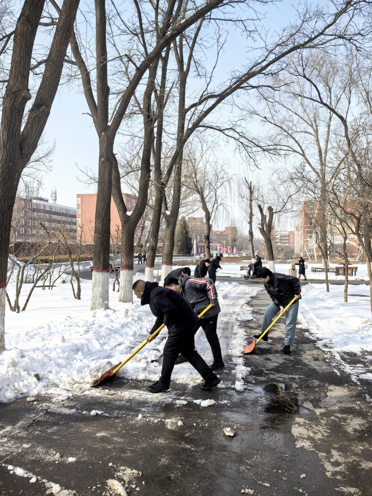 迅速响应学校号召,贯彻落实应急处置相关部署安排,迎“寒”而上,以“动”制“冻”,教师党员和学生志愿者齐上阵,暖心扫雪保障全校师生出行安全。
