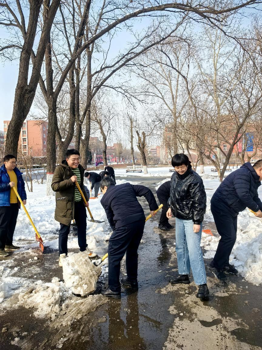 冰雪消散,暖阳将来。新学期伊始,学院师生以集体劳动拉开序幕,团结一心、共克时艰,为大家清扫出一条安全、暖心的道路。相信在大家的共同努力下,学院必将展现出更为积极向上的精神风貌,以全新的姿态昂首阔步迈向新学期、新征程!
