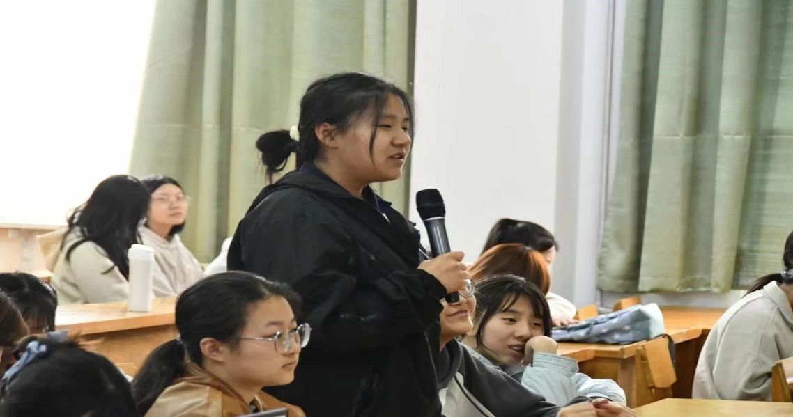 高沛然向同学们介绍了自己高中阶段担任2020届“爱织梦”学生公益负责人及大学从事志愿者的经历,从不同的志愿身份出发,向同学们解读了志愿服务的意义,令人耳目一新。最后强调了公益服务不分大小,勿以善小而不为。提问环节,同学们积极向两位分享者提问,并获得了细致的解答。