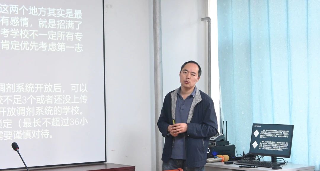 张志国首先对“调剂”这一概念作了简要介绍,从门类范围和专业科目相同就近原则两方面对如何抓住调剂机会进行阐述。值得注意的是,张志国提到不同学校的招生学科标准不同,考生应及时关注目标学校的学位评定委员会发布的相关信息。其次,针对调剂挑选的先后顺序、12小时调剂的计算方法以及调剂志愿报考的流程和注意事项作了逐一讲解,并对同学们提出的疑问进行了详细解答。