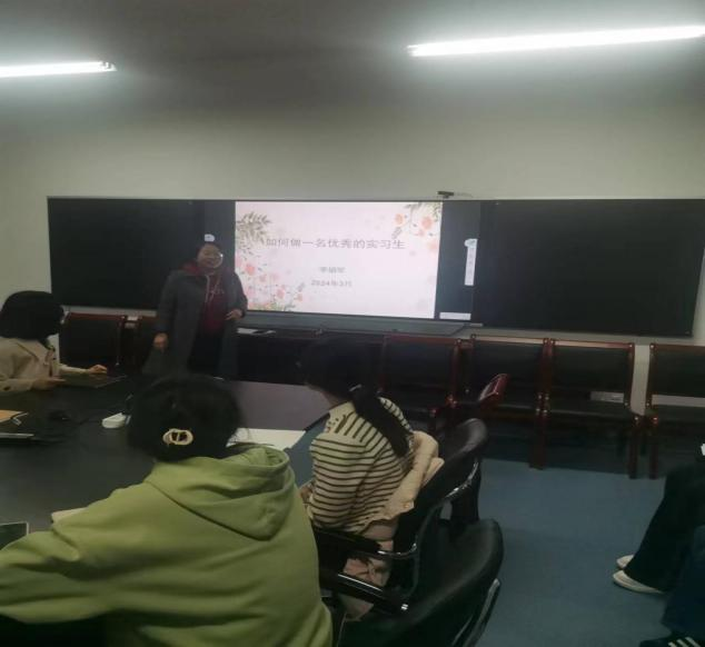 李娟琴老师从“思想跟上”“付诸行动”“仅是开始”三个方面向同学们系统介绍了如何成为一个优秀的实习生以及在实习中应注意的问题。她特别强调,在实习中要明确目标、转变角色、虚心学习、用心体验,并及时进行总结反思。在自由发言环节,同学们纷纷向李老师提问有关实习的问题;李老师结合自己多年指导实习的经验,耐心给予了解答。
