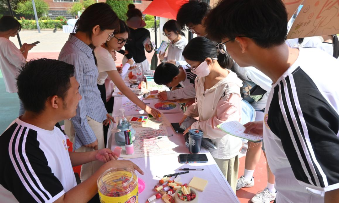 活动开始前,工作人员通过学院公众号、朋友圈等渠道积极宣传活动,吸引同学们报名参加。活动期间,“解忧杂货店”“快乐棒棒糖”“指纹树”“请和我击掌”等缓解压力、鼓励他人、交换快乐的小游戏让参与的同学不仅感受到了心理健康的重要性,还掌握了一些解决心理问题的有效方式。同学们用不同的画笔写下暖心的话语、用自己的指纹记录下独特的指纹树、用一幅幅作品表达着对心理健康的认识以及对本次活动的赞美。活动结束后,全体成员进行合影留念。
