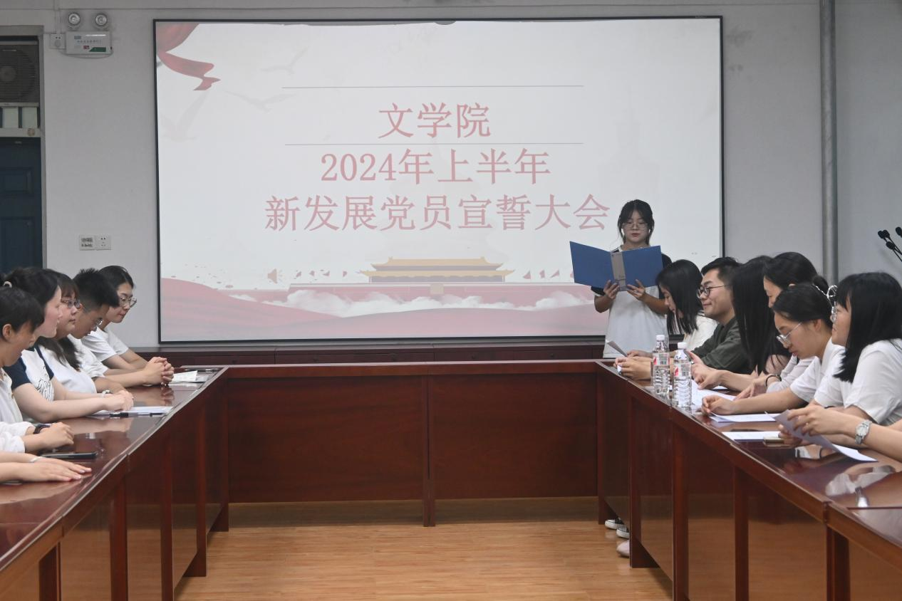 于2201会议室开展2024年上半年新发展党员宣誓大会,学院副院长兼学工组长樊琳琳、院专职组织员王永青、各学生党支部书记及全体新发展党员参加大会。