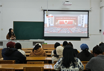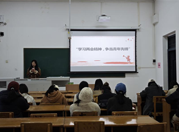 活动以专题讲解、视频放映等形式展开。宣讲人围绕“两会精神”的核心框架,结合党史案例与时代背景,系统阐释了全国两会的理论逻辑与实践价值。通过梳理思想的发展脉络,重点解读“全国两会是我国政治生活中的大事,汇聚民智、凝聚共识,关乎国家发展方向,与我们每个人息息相关。”“两会决策、政策为国家发展绘就蓝图,也为我们青年指明道路,从科技创新到乡村振兴,桩桩件件,皆是我们未来的方向标。”等两会的重要内涵,强调“当代青年要在实现民族复兴的赛道上奋勇争先”。活动最后,宣讲人结合真人漫画