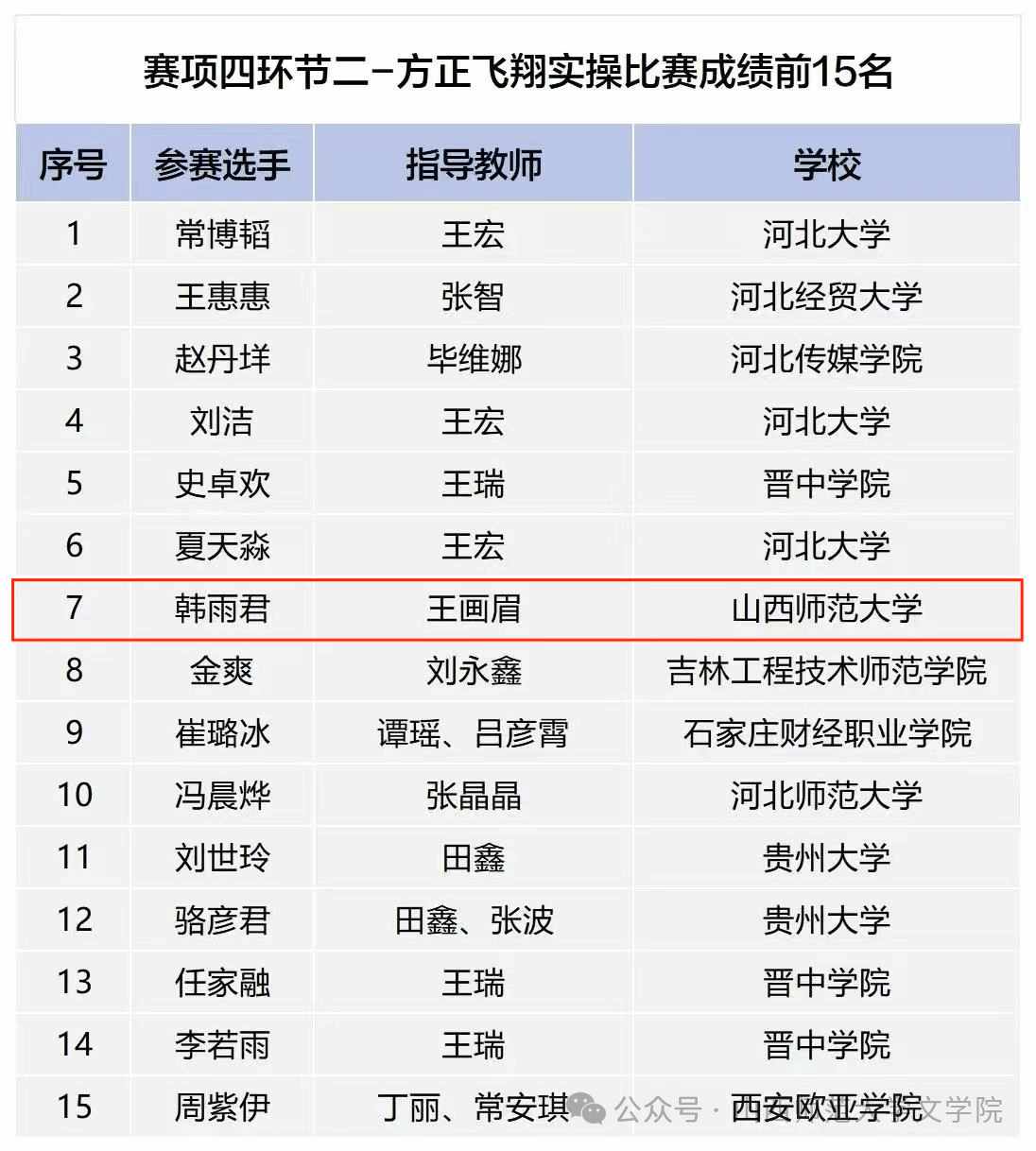 学子韩雨君在王画眉老师的指导下成功跻身环节二方正飞翔实操比赛第7名,展现了学院在新媒体设计与排版领域的扎实教学成果。