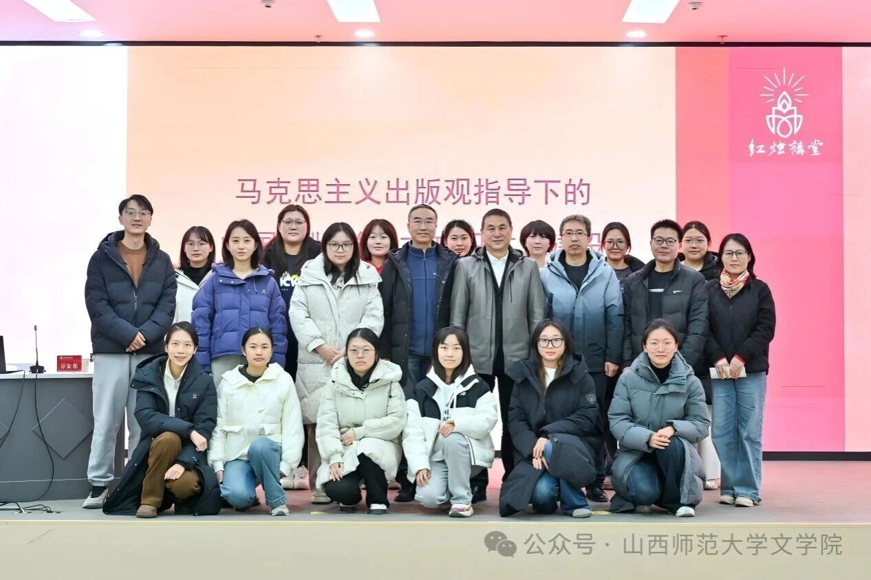 副院长关黑拽主持会议,编辑出版学专业全体本科生、研究生及部分教师到场聆听。