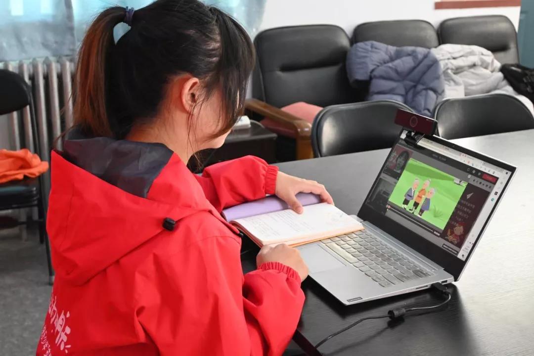 “学雷锋,送温暖”云支教团队志愿者曹颖连线青海省海南州兴海县民族寄宿制完全小学,为孩子们上语文课。