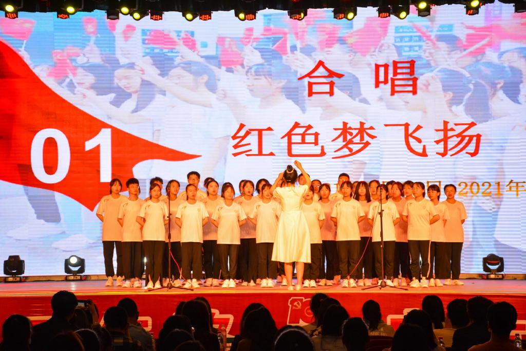 2002班团支部带来的合唱《红色梦飞扬》,将《在灿烂的阳光下》和《没有共产党就没有新中国》完美衔接,通过合唱的方式为观众送上视听盛宴。2004班团支部的诗歌朗诵《重走长征路》,展现了红军万里长征中克服无数艰难险阻的战斗豪情和澎湃气势,激励同学们肩负历史使命,奋力走好新时代长征路。2003班团支部带来的舞蹈《我和我的祖国》,动作整齐划一,情感激昂饱满,用优美的舞姿展现出中华儿女的爱国热情和不屈精神。2001班团支部的红色短剧《改革开放新农村》,生动展现了改革开放以来我国农村发展取得的历史性成就。2005班团支部的《发展社会主义,争做有为青年》主题宣讲,把理论宣讲与情景表演巧妙融合,带领同学们一起走近社会主义发展史,激励大学生要争做新时代所需要的有为青年。2006班团支部表演的红色剧《前进!前进!》,寓意深刻,耐人寻味,用特定的画面和载体,带领我们回顾了中国共产党的发展历程。