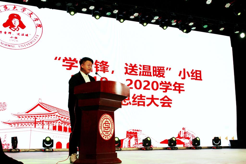 大会上,“学雷锋,送温暖”小组总负责人李元杰做总结汇报,介绍了“学雷锋,送温暖”小组40多年来取得的成就以及对社会做出的贡献,对小组中每一位成员的付出表达了真挚的感谢并鼓励大家为更多的人送去温暖。总结大会以视频、朗诵、情景剧等多种形式生动形象地展现了“学雷锋,送温暖”小组的真实事迹。其中,“学雷锋,送温暖”小组理论宣讲实践队进行以“转型发展,久久为功”为主题的理论宣讲,号召大家珍惜资源,保护环境;“携手抗疫,爱心助学”实践团队的表演更是感人至深,收获了观众热烈的掌声。大一学生的校操表演充分展示了真人漫画