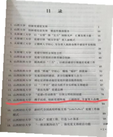 2020年4月,工作案例入选中共山西省委教育工作委员会《山西省高校党建创新案例汇编》。
